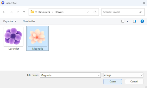 Navigate to the Resources > Flowers folder included in the downloaded sample project.