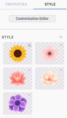 In Customization Editor, you can combine styles and components to create Premade designs. A Premade specifies a set of configuration values, grouped as a preset. Users can choose from the created premade designs in the companion app.