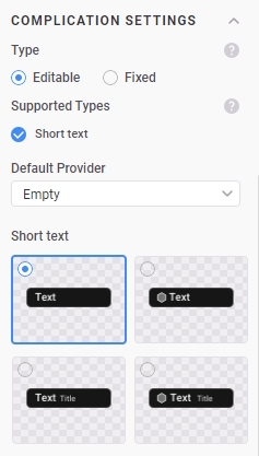 Under the Complication Settings properties, choose Text in the Short text layout.