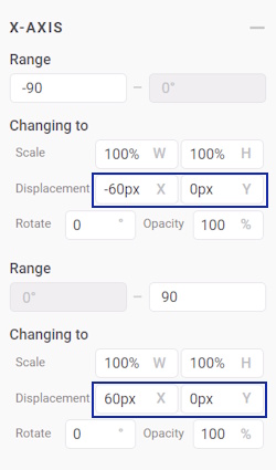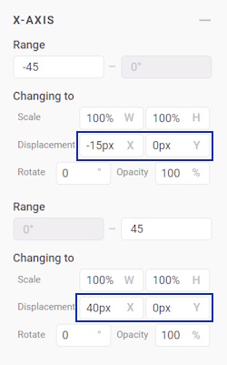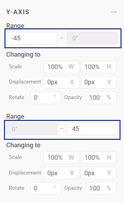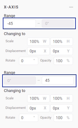 - Then, change the Range to -45 for negative rotation and 45 for positive rotation on both the X-axis and Y-axis.