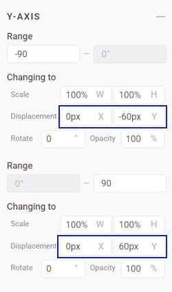 - positive rotation Y: 60px