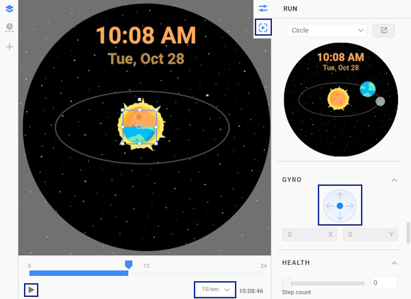 With gyro effects and tag expressions, you can create watch faces with animation-like effects. In this Code Lab, learn to design a dynamic outer space scene where the Moon orbits Earth and where both the Moon and Earth orbit the Sun while spinning on their axes. Add depth and realism by using gyro effects.