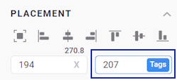 - Use tag expressions to determine the placement of the grouped components. Go to Properties > Placement and apply the following tag expressions: