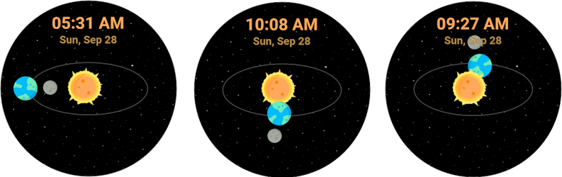 NoteThe sample project is designed to create a visually appealing watch face with movement. However, the actual calculations for the rotation of Earth and the Moon are not intentionally applied.