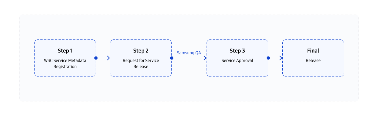 • Step 3. Service Approval: Samsung Pay team will review functionalities and UI of the app uploaded. Relationship manager will approve the service release if everything looks OK. If for some reason, the request is rejected the relationship manager will explain the reason. Service release request can be re-submitted once reject reason has been addressed.