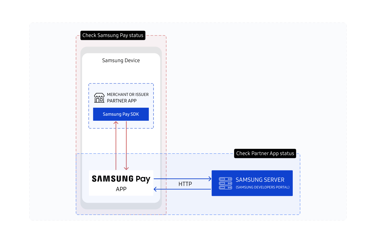 In partner verification process Samsung Pay SDK verify your registered app, version in Samsung Pay portal and service. It also determines device and app compatibility. Your app needs to verify the presence of the Samsung Wallet app on the device, its status, and whether or not its version is sufficient to support your implementation of the SDK.