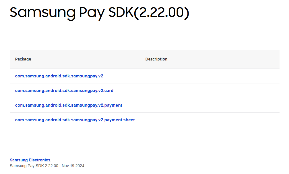 Javadoc - Provides descriptions of the APIs included in the Samsung Pay SDK, along with sample code showing how to use them.