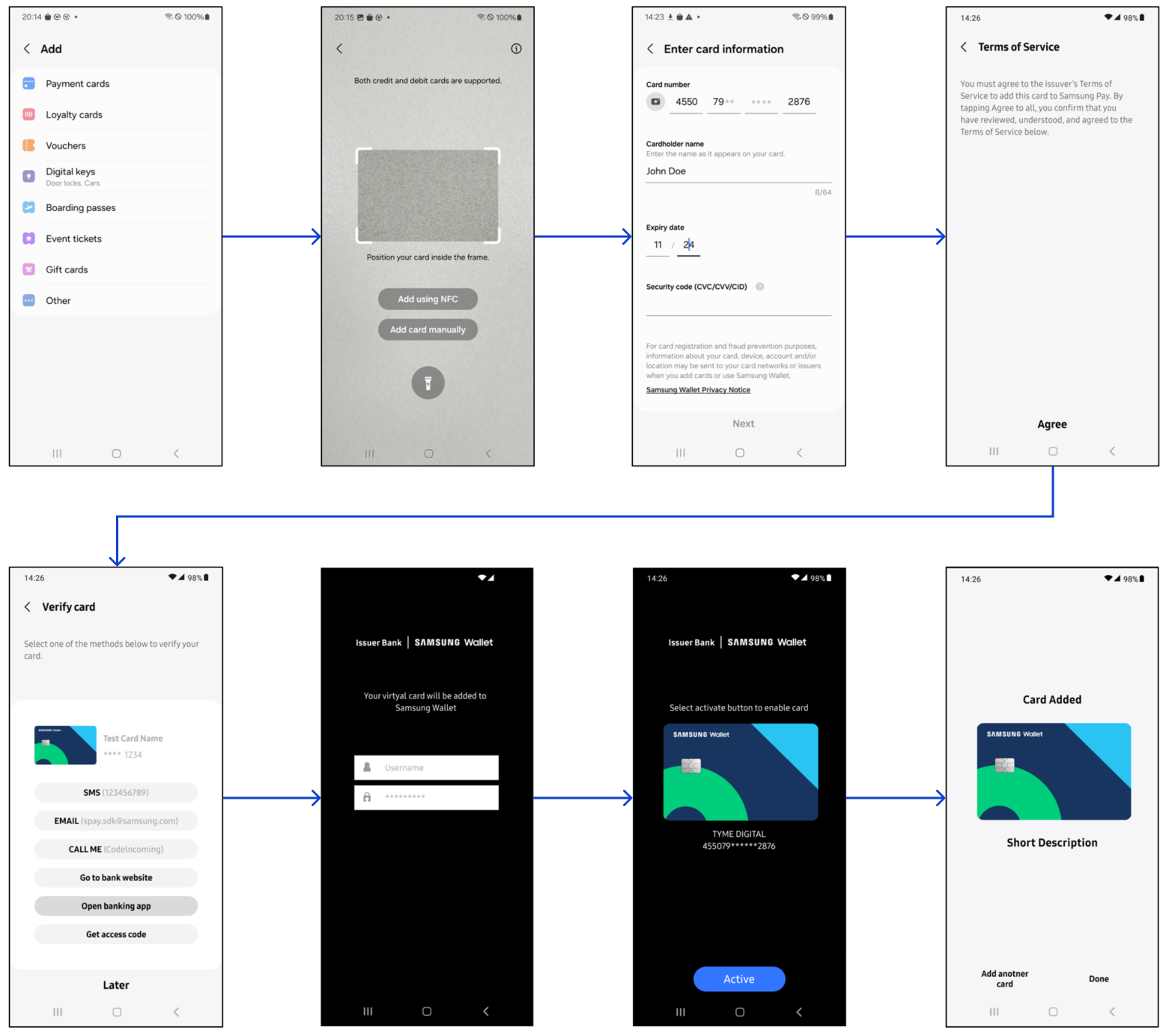 This method allows Samsung Wallet to launch a bank’s mobile app, where the user’s identity is verified before provisioning their payment card.