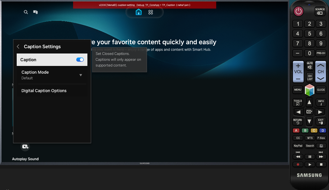 You can set captioning options. On the emulator, go to "Settings > General > Accessibility > Caption Settings".